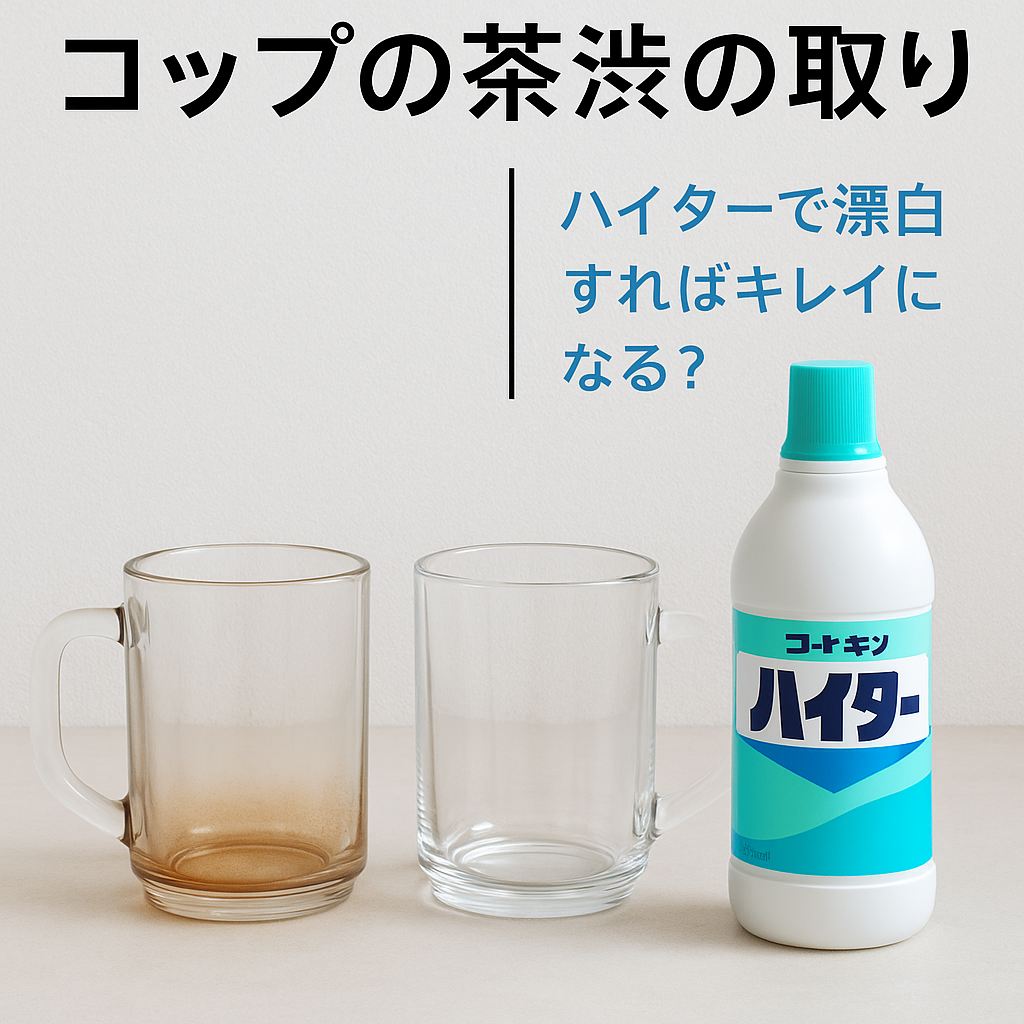 お茶やコーヒーを飲んだ後に、コップの内側に残る「茶渋」。毎日しっかり洗っているつもりでも、気づけばうっすら茶色くなっていて落ちにくい…そんな経験はありませんか?茶渋は放置すると見た目が悪いだけでなく、雑菌が繁殖する原因にもなるため早めの対処が必要です。本記事では、ハイターでの漂白は本当に効果的なのか、そして重曹やクエン酸など身近なものでできるお手入れ方法まで、分かりやすくまとめました。中学生でも理解できる内容なので、今日からすぐに実践できますよ。