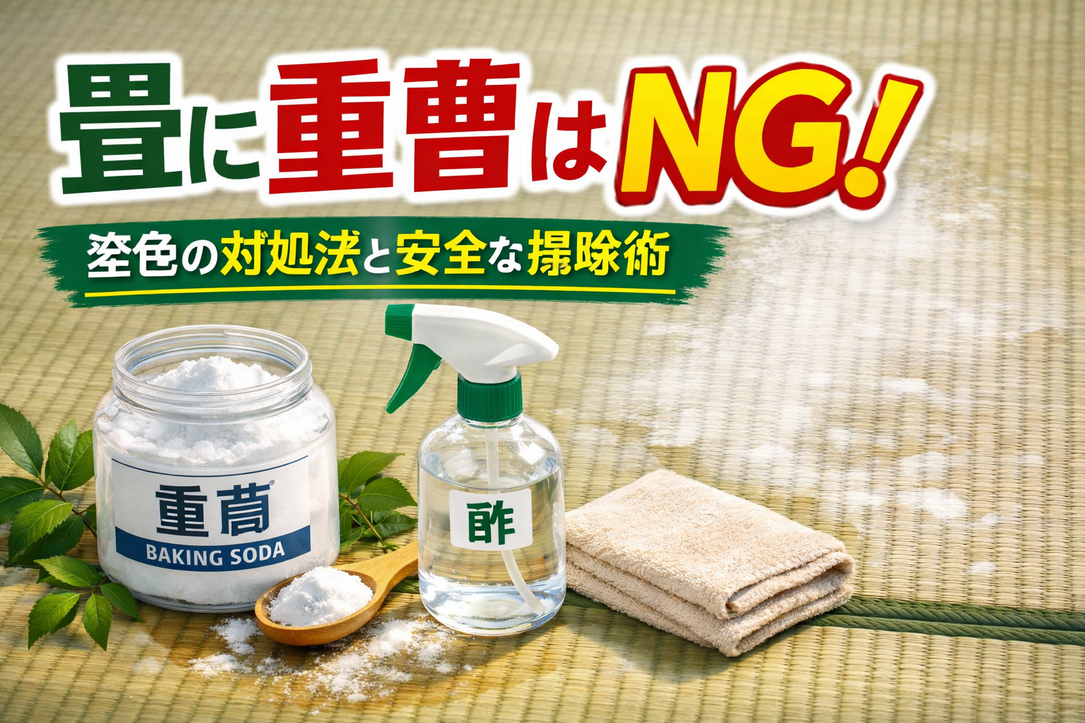 「掃除に万能!」とよく聞く重曹。でも、ちょっと待って!畳に重曹を使うと、取り返しのつかない変色やダメージを引き起こすことがあるんです。この記事では、そんな重曹の危険性から、変色してしまった畳をどう直すか、そして家にあるものでできる安全な掃除法まで、わかりやすく解説します。「畳が白くなった!」「どうすれば元に戻るの?」と悩んでいる方、必見です!